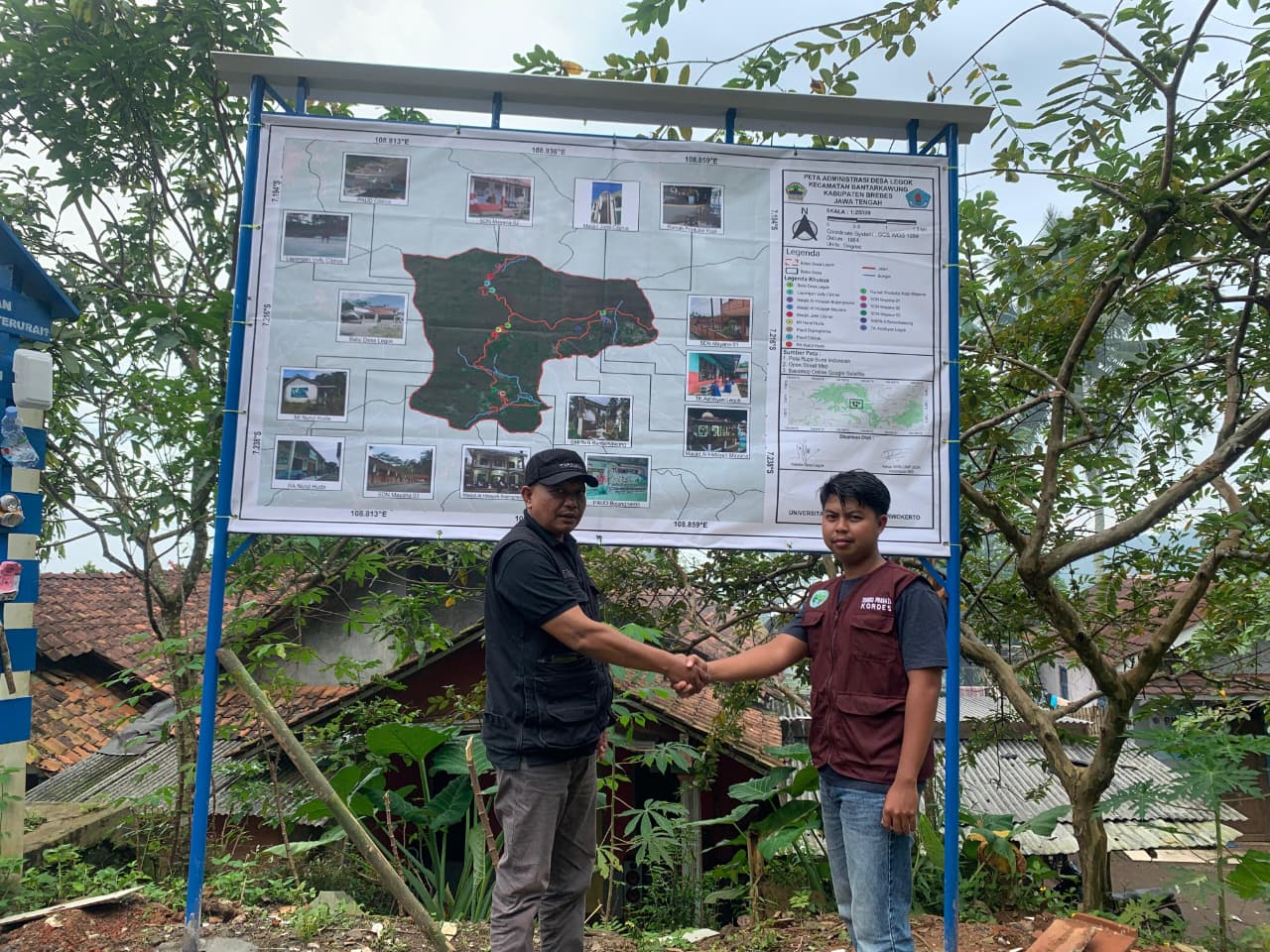 Tidak hanya itu, mahasiswa KKN UMP turut menyusun dan membuat peta denah fasilitas Desa Legok sebagai sarana informasi publik yang memudahkan masyarakat maupun pendatang dalam mengenali lokasi fasilitas penting desa, seperti kantor desa, tempat ibadah, sarana pendidikan, dan fasilitas umum lainnya.